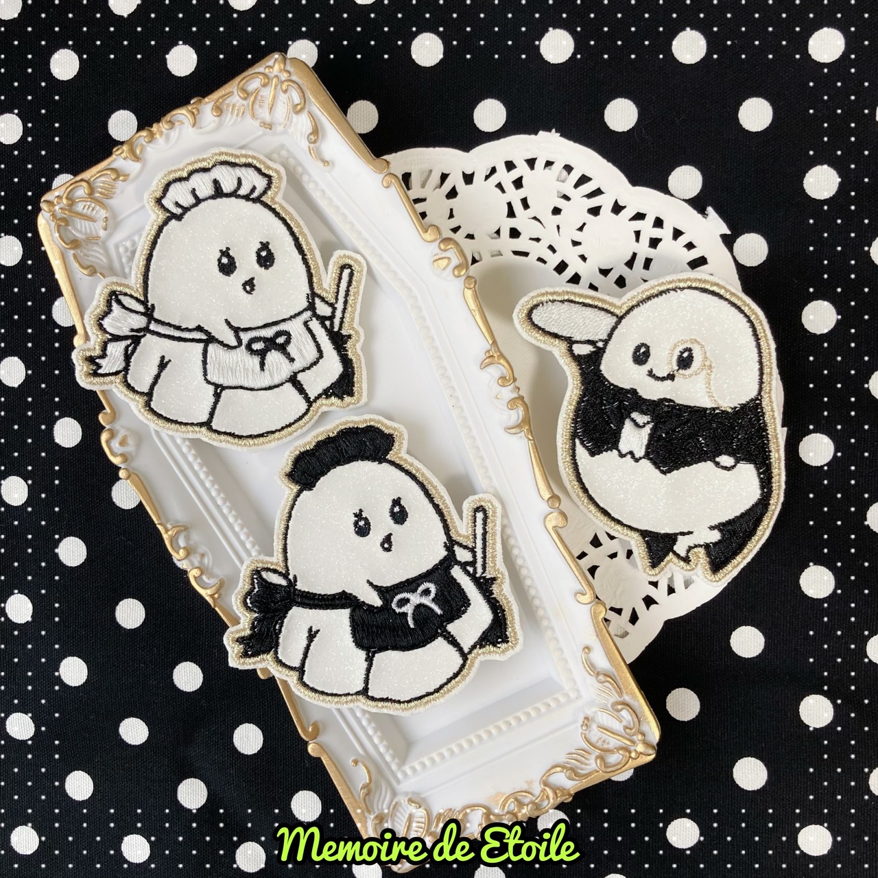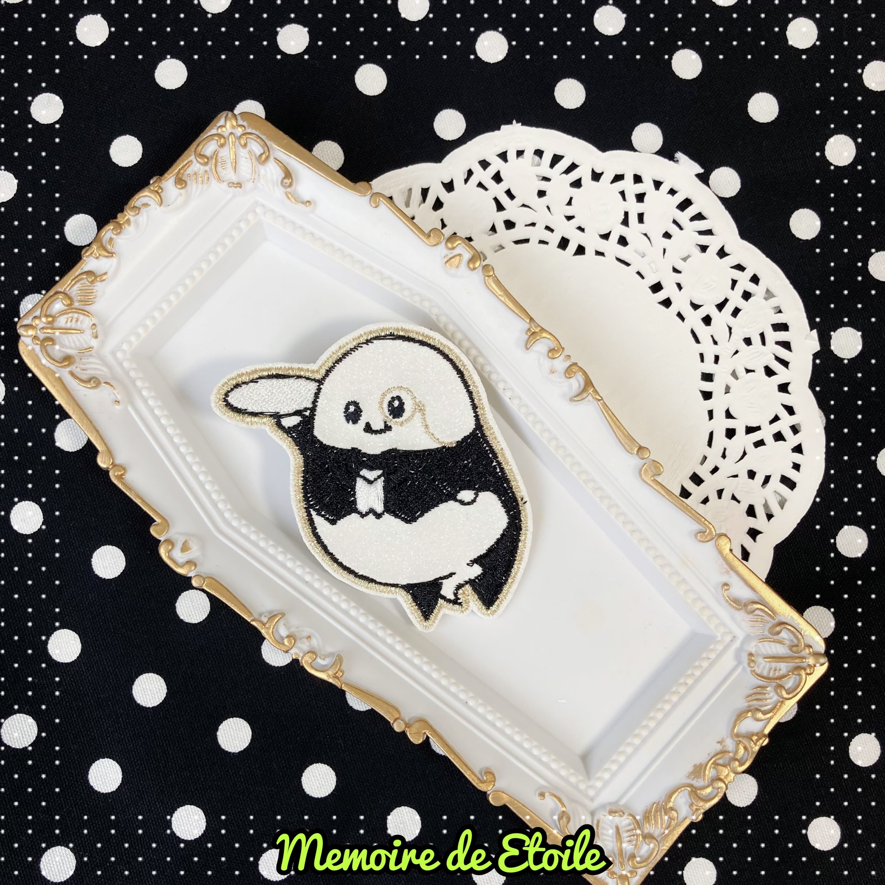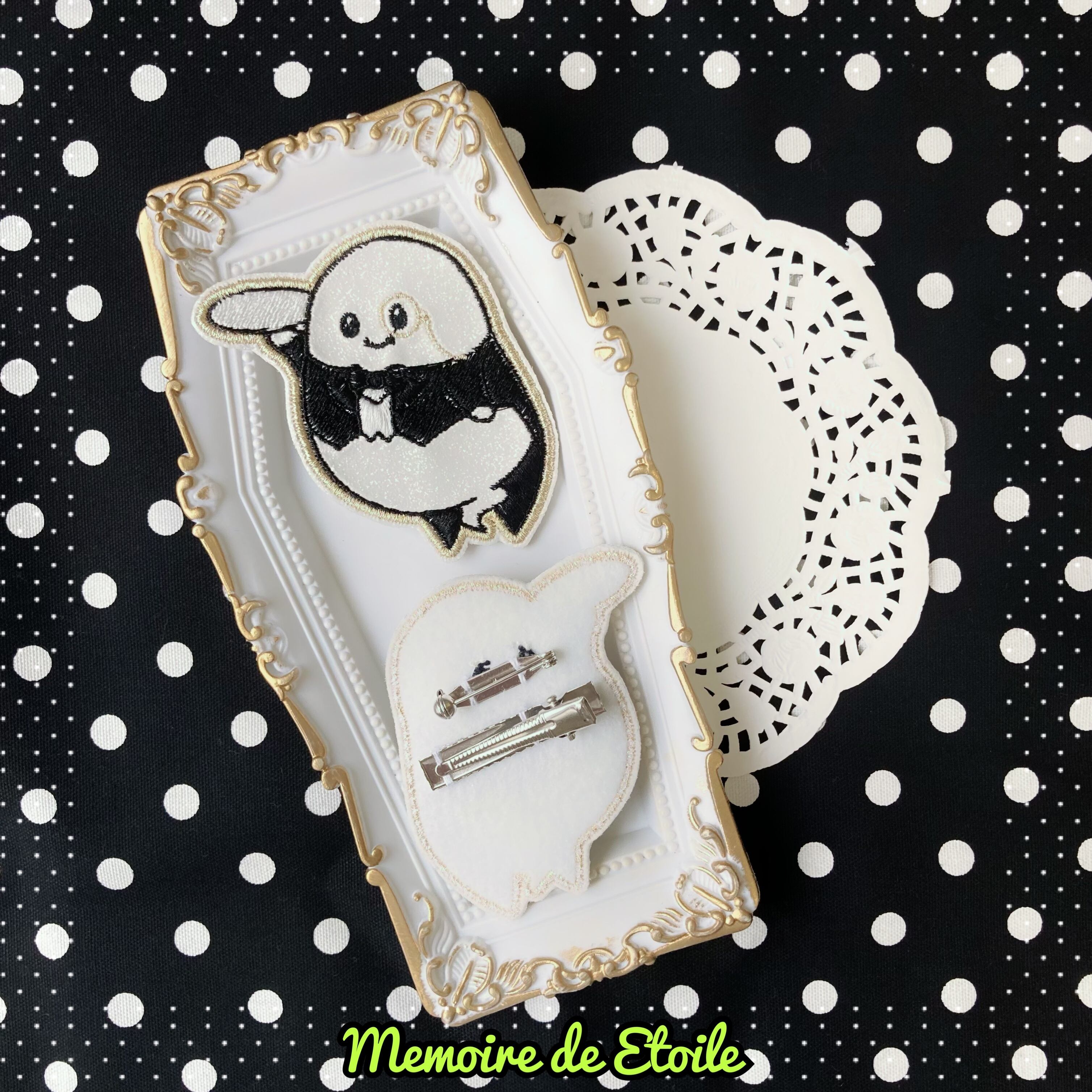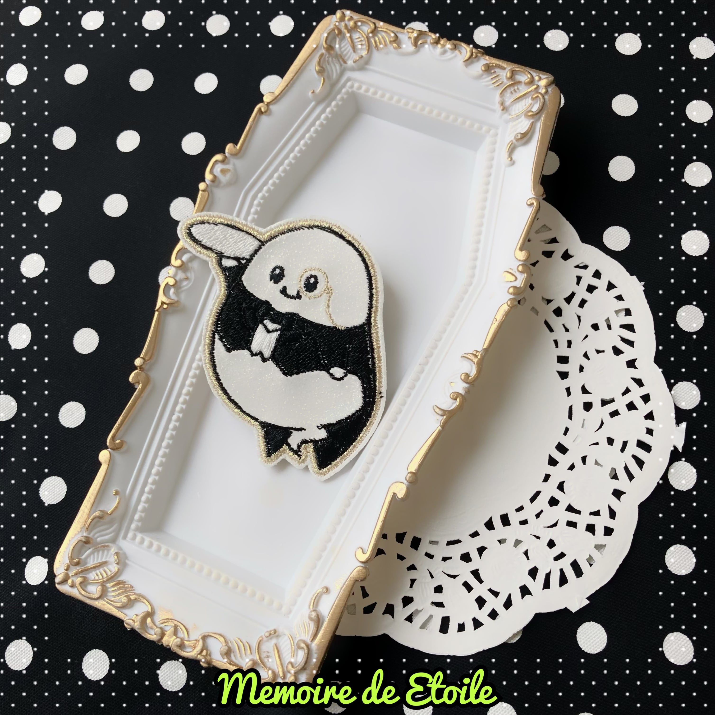 グリッター素材に刺繍を施した執事服のオバケちゃんクリップです!(ヘアクリップ、ブローチ2way)