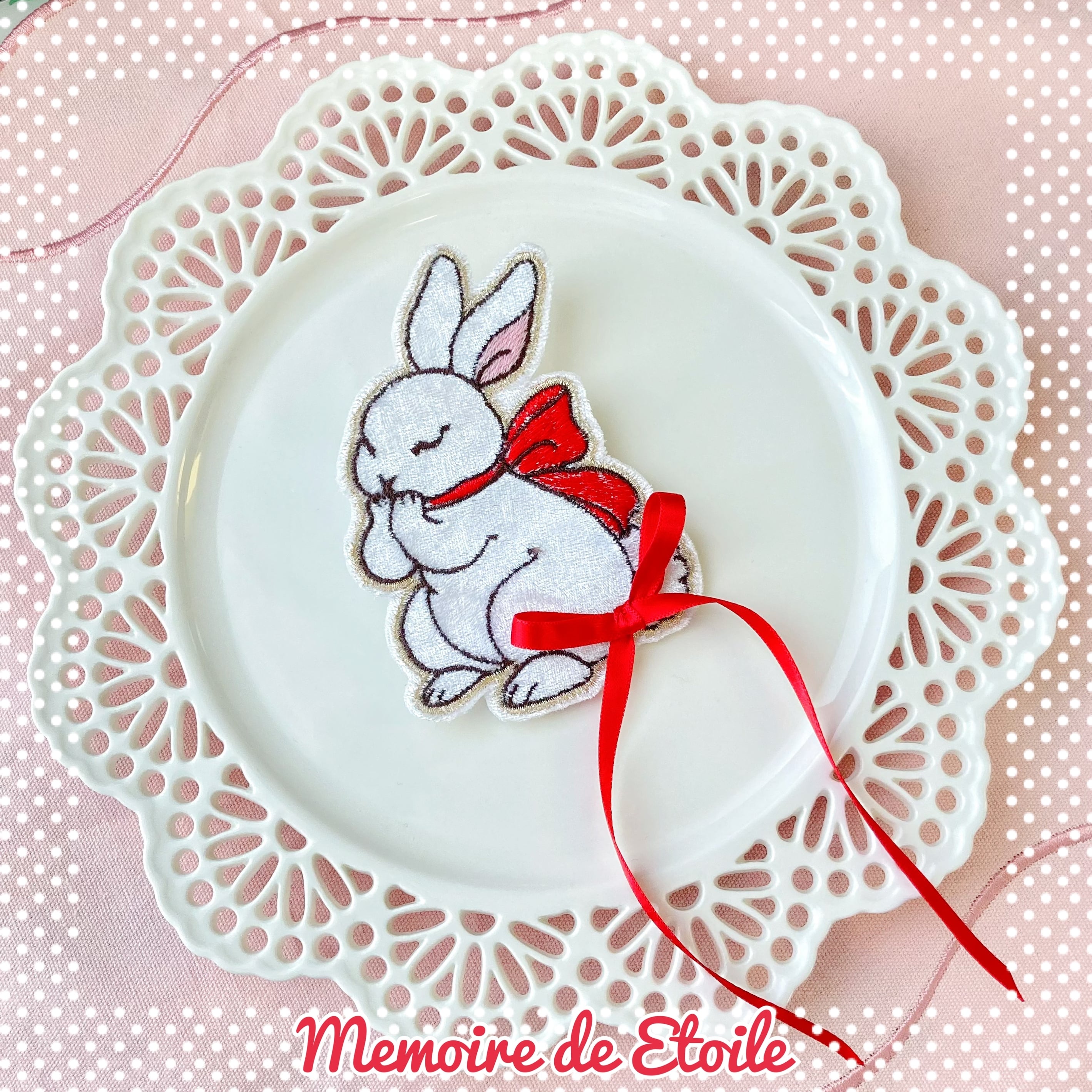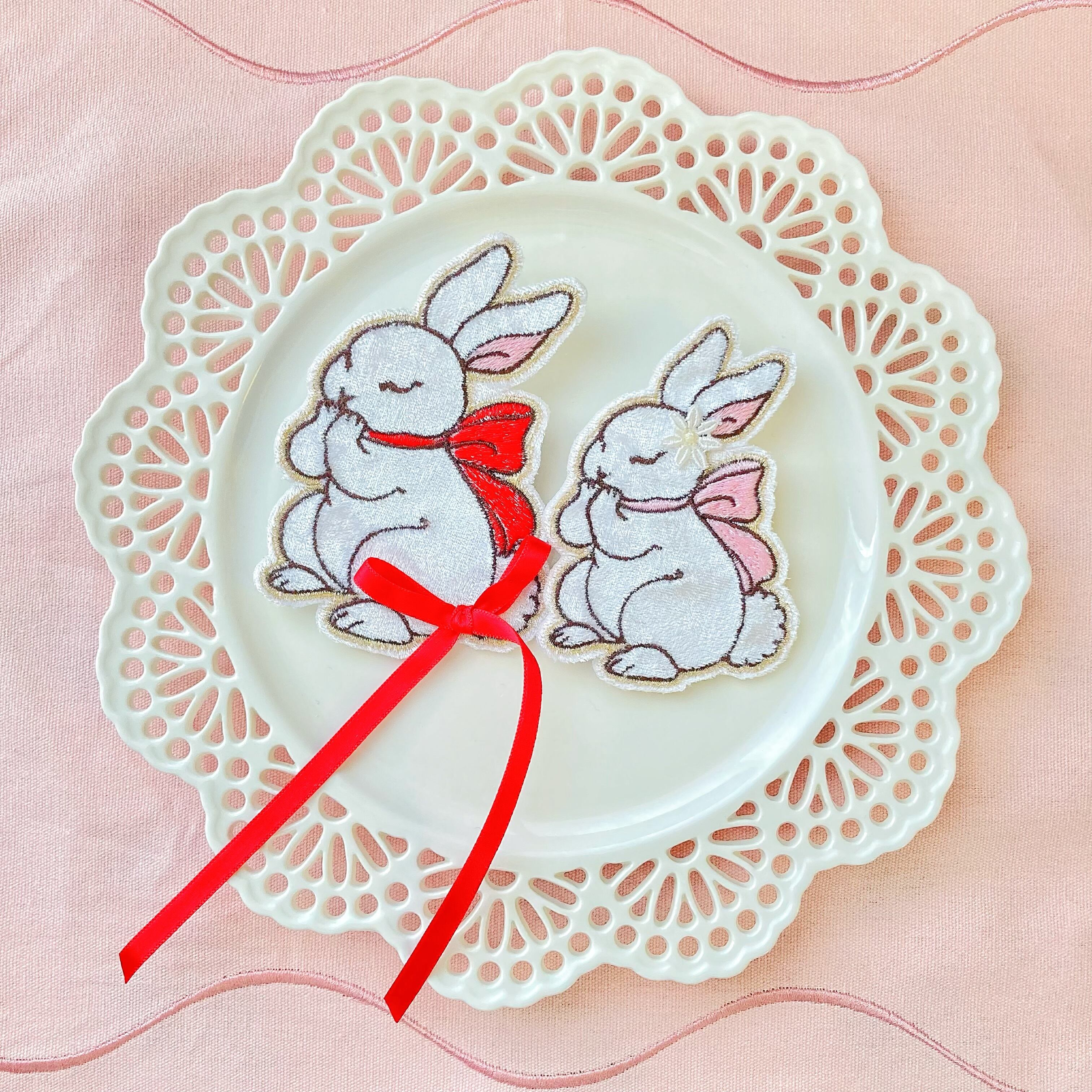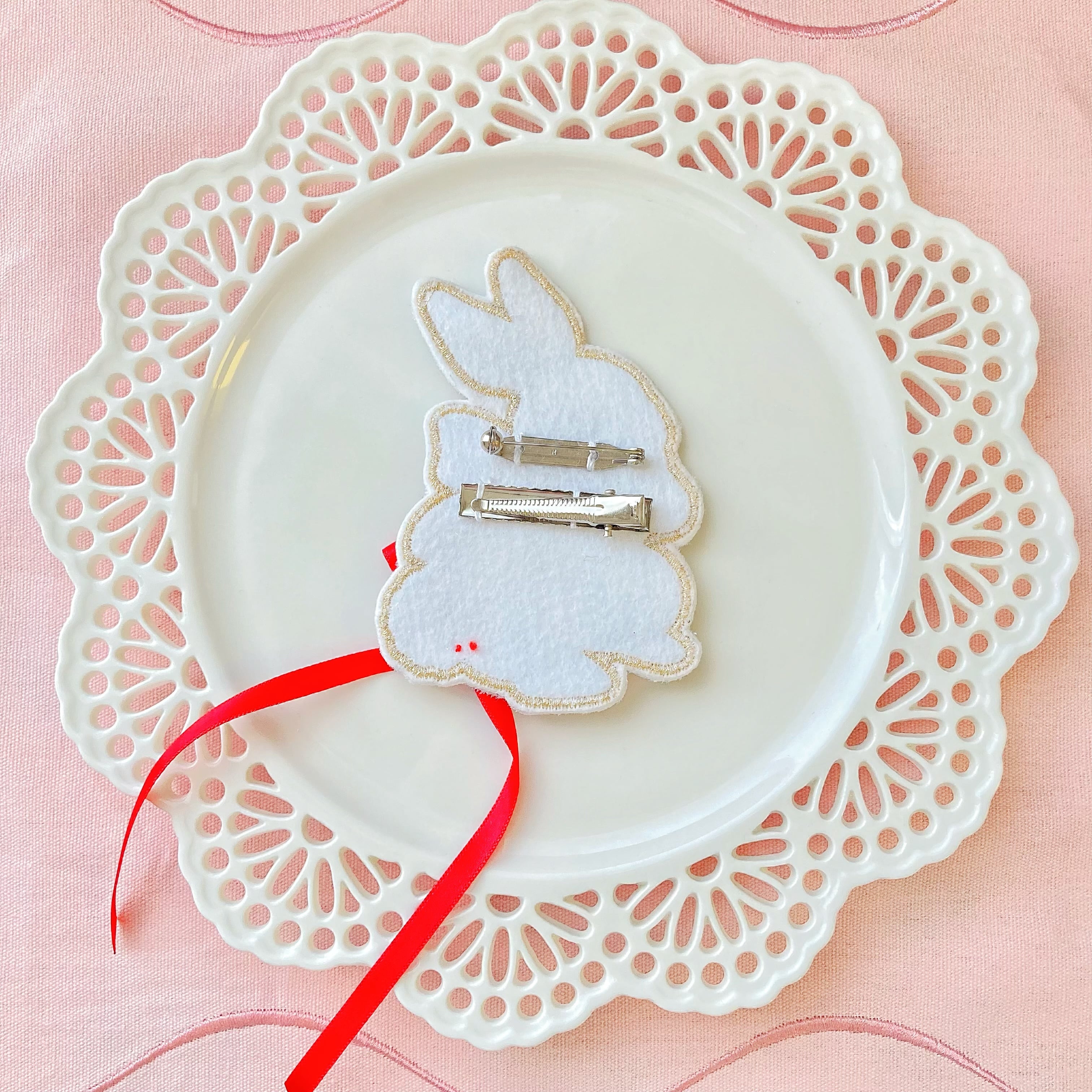 クラッシュベロアに刺繍を施したうさぎモチーフのクリップです(ヘアクリップ、ブローチ2way)
