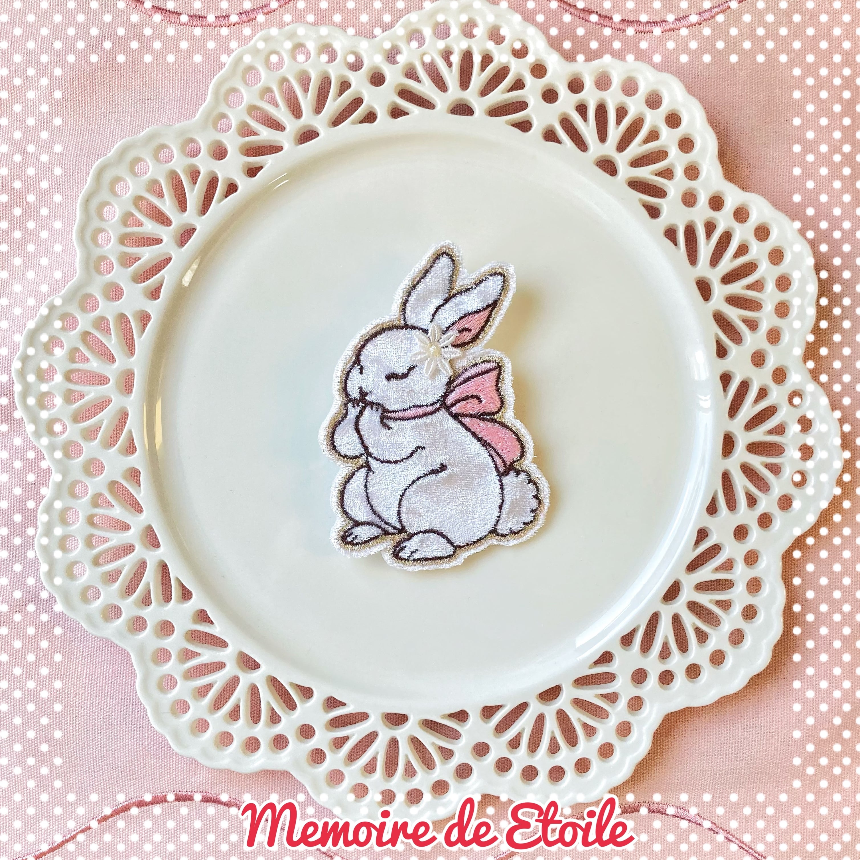 クラッシュベロアに刺繍を施したうさぎモチーフのクリップです(ヘアクリップ、ブローチ2way)